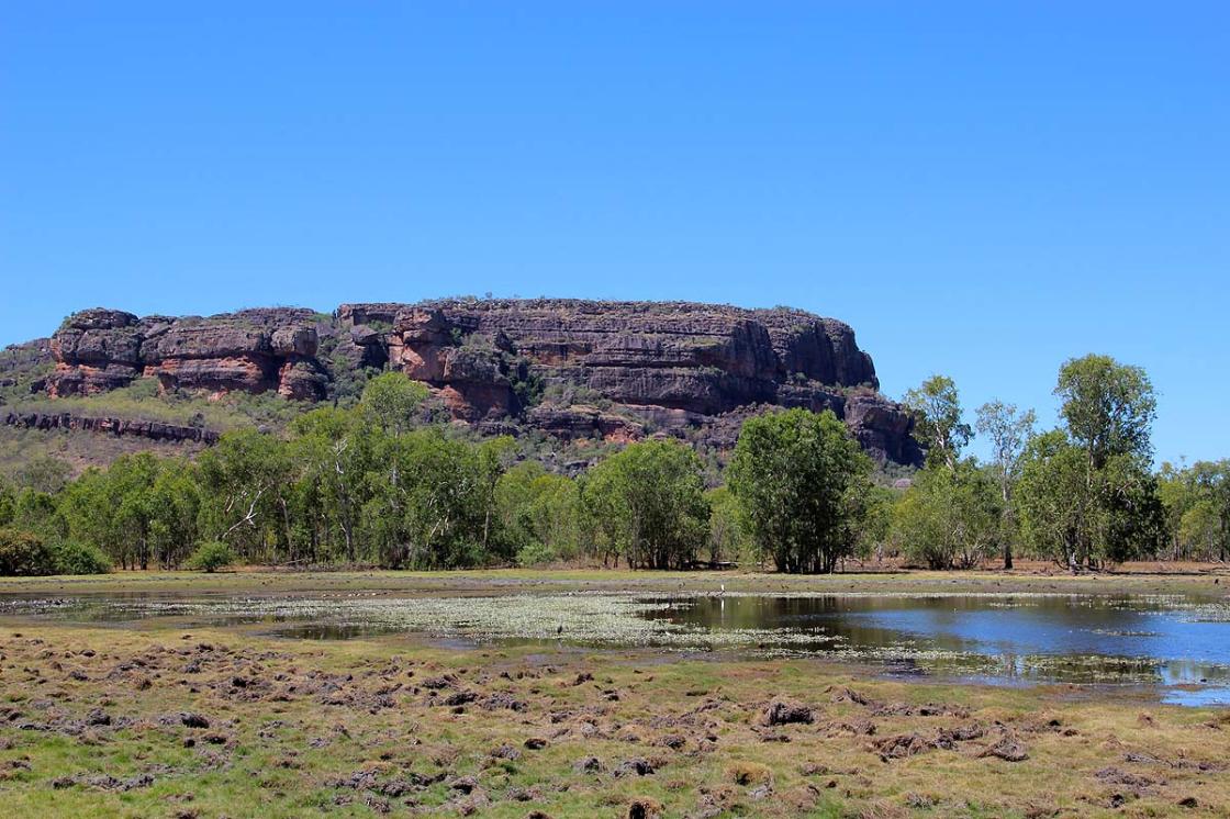 Anbangbang Billabong lies in the shadow of Nourlangie Rock within Kakadu National Park and is a good place to view a wide range of wildlife. Large numbers of water fowl and wading birds inhabit the billabong and many wallabies can be found grazing around the water’s edge. There is a walking trail around the circumference of Anbangbang billabong with many picnic areas.© Wikipedia