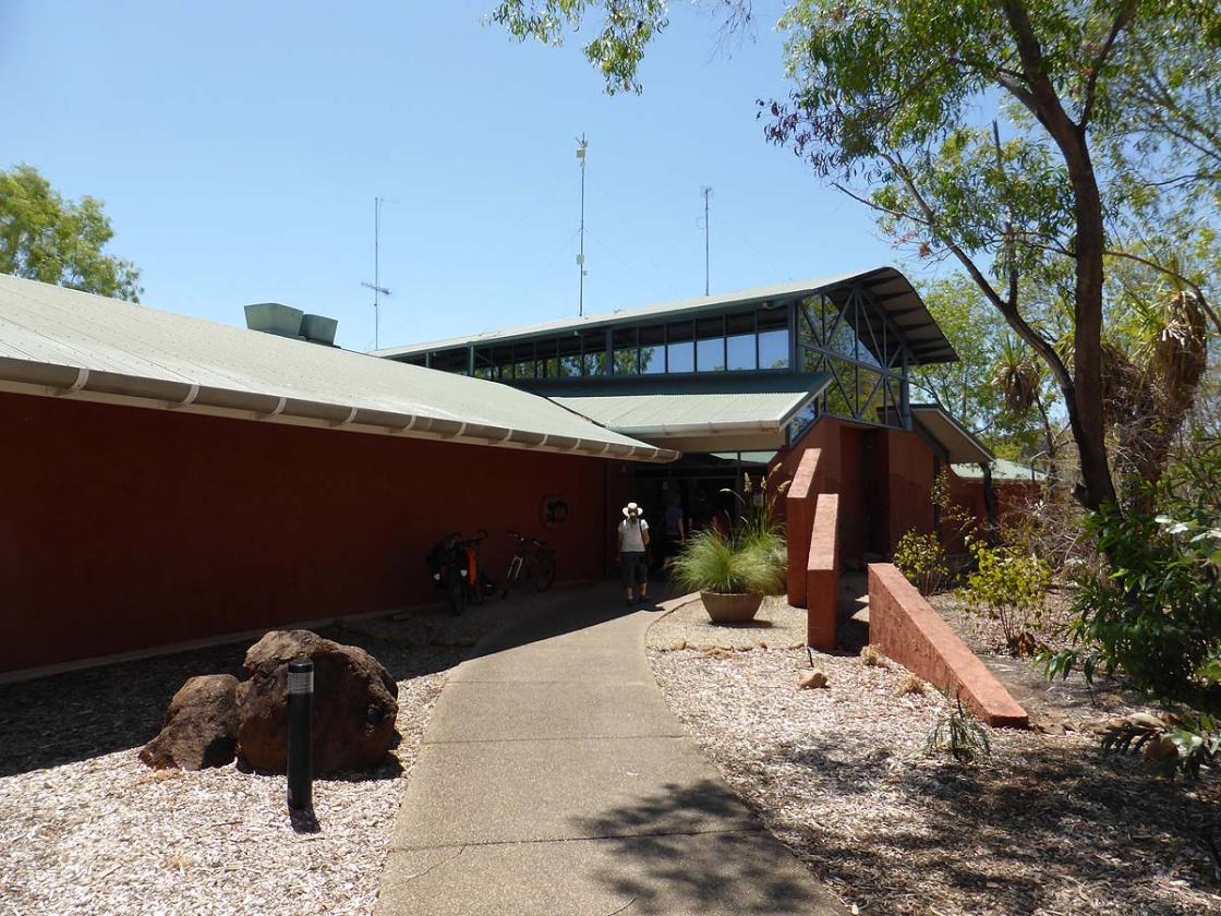 Nitmuluk National Park (Katherine Gorge) is about 29 kilometres from Katherine in the Northern Territory. The Nitmiluk Visitor Centre is perched above the gorge and has a cafe, souvenir shop, tour booking desk and interpretive displays about the formation of this magnificent landscape. This is quite an amazing building with beautiful timber benches and seating.