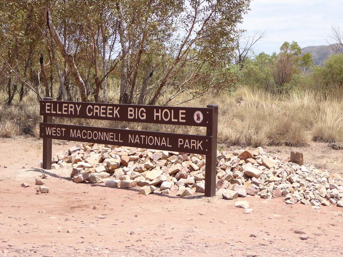 Ellery Creek Big Hole is a popular spot in the West MacDonnell Ranges about 88 kilometres west of Alice Springs along Larapinta Drive and then turn onto Namatjira Drive (or Red Centre Way).
