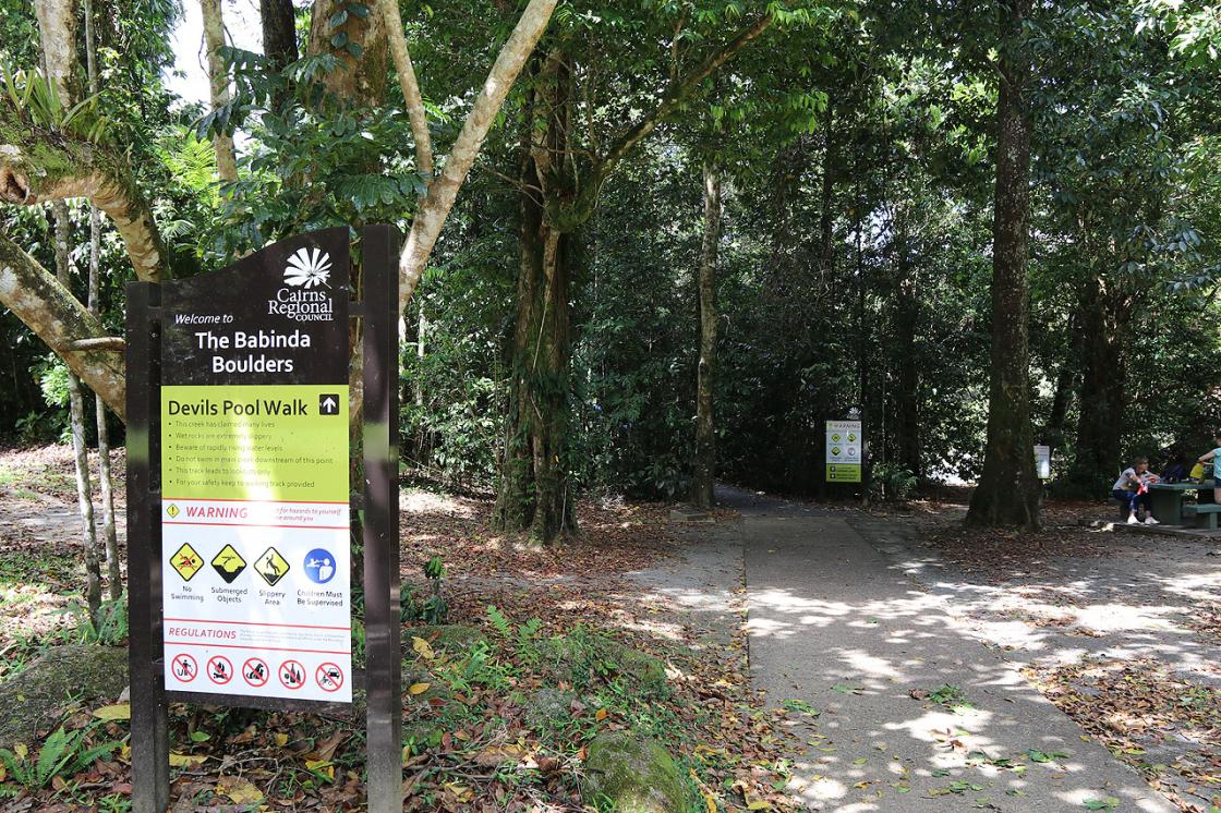 The Devils Pool Walk is located at Babinda Boulders and takes you along a lovely shaded track to the main boulders viewing platform. The Boulders are a series of huge outcrops of granite found along Babinda Creek - about 6 kilometres drive from the small town of Babinda in northern Queensland.