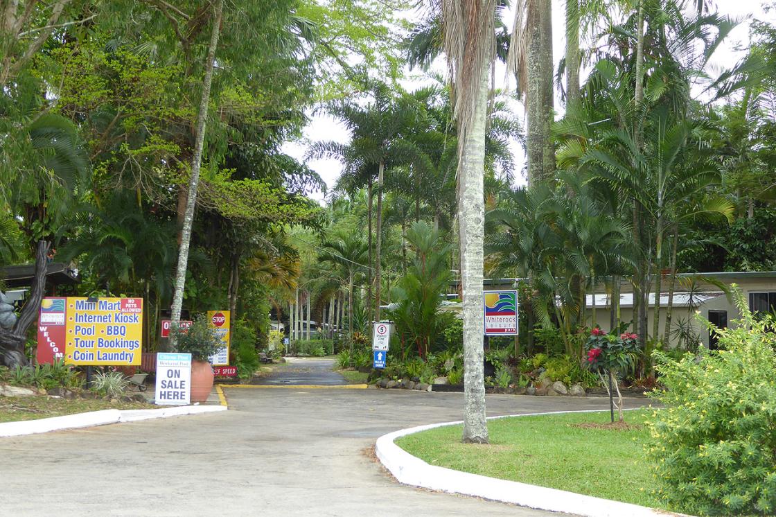 White Rock Leisure Park in Cairns is located just off the Bruce Highway - a little hard to get to with no direct access from the highway. It provides budget accommodation in a well established tropical setting.