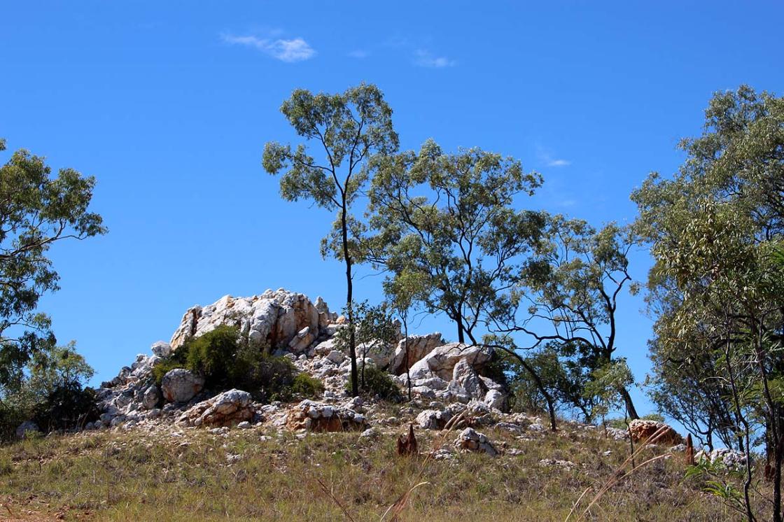 As we headed out of Cobbold Village we decided to take a detour down the 4WD track to check out the Quartz Blow on the property. The road is quite rough and only 4WD access is recommended, but it was definitely worthwhile to see this amazing outcrop of Quartz rock. A large area of quartz has been exposed on the top of a hill after the surrounding rock was eroded away.