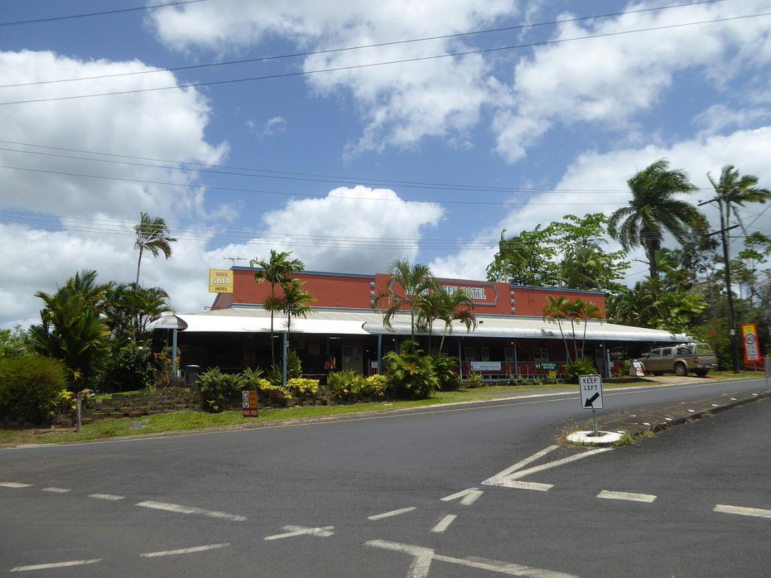 Mena Creek Hotel is a short walk from the iconic tourist attraction of Paronella Park in northern Queensland - not far from Innisfail along the old Bruce Highway. After our evening tour of Paronella Park we ventured across the swinging bridge to Mena Creek Hotel for dinner. Great views of the waterfall and river from the Bridge.