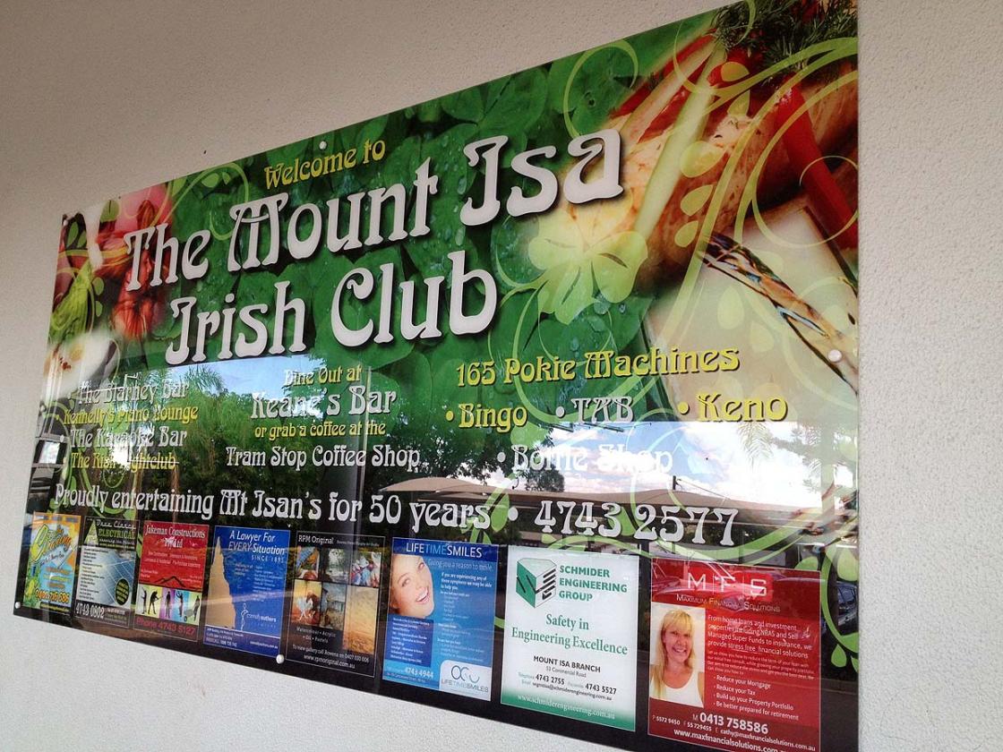 The Mount Isa Irish Club can be found on 19th Avenue, Mount Isa and is a great place to visit for a meal. A courtesy bus service is provided by the Club - they happily picked us up from the Sunset Tourist Park so we could enjoy a night out. We met some friends in Kennelly's Piano Lounge for a pre-dinner drink and then headed into Keane's Bar and Grill for a delicious meal. The prices are reasonable - we even received a free bottle of wine with our meal. The staff are friendly and the service was great - we have eaten there on several occasions.