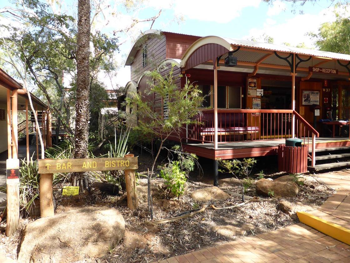 The Undara Experience is quite a large set up with lots of old restored railway carriages used for accommodation and cafes. There are plenty of other accommodation options - Pioneer Huts, Swag tent village (permanent tents), Caravan and camping ground and a special area set aside for groups called the Safari Shelter. The caravan sites are drive through and off-set from each other so that you have plenty of space - between each site is a fire area with a cooking plate on a platform.