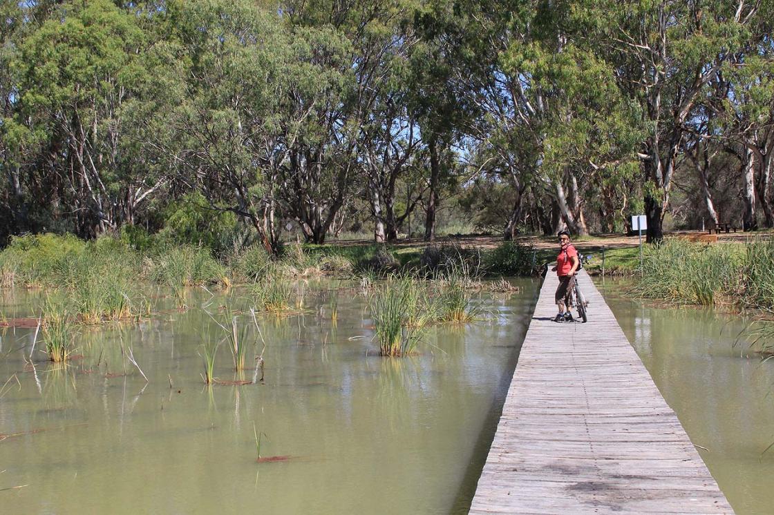 This trail runs along the length of the riverfront at Renmark with an extension of the trail to the nearby town of Paringa (the path over the bridge is separated from the traffic and runs along the centre of the road). We rode our bikes into Renmark from the Riverbend Caravan Park to the end of the trail at New Landing Way before heading back through town and over the bridge to Paringa. This is a relatively easy ride on a fully sealed path - with some sections crossing over residential streets.