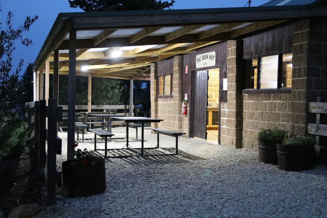 Outside the camp kitchen is a huge covered seating area with barbeques and outdoor sinks – just beautiful. Plans in the future include a pizza oven near the barbeques.