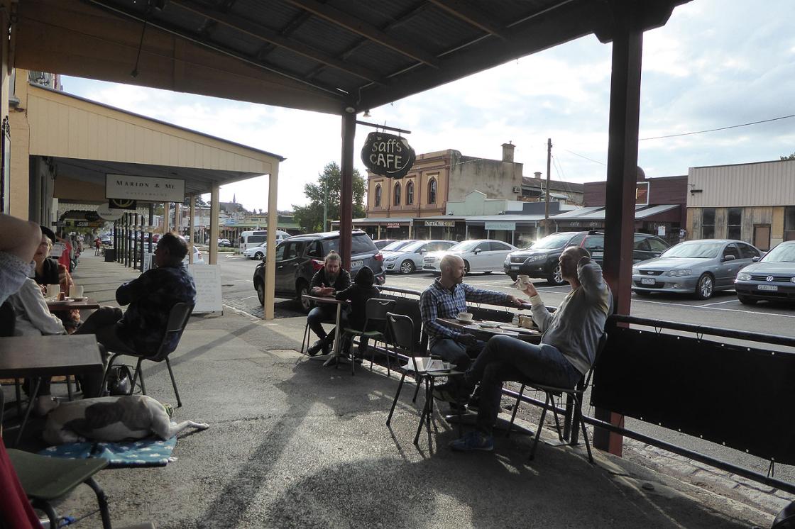 While walking in the beautiful downtown area of Castlemaine, Victoria we stopped at Saffs Cafe for an afternoon cup of coffee. This lovely cafe is across the road form the Restorer's Barn where we had just spent a few hours marveling at their range of old stuff.