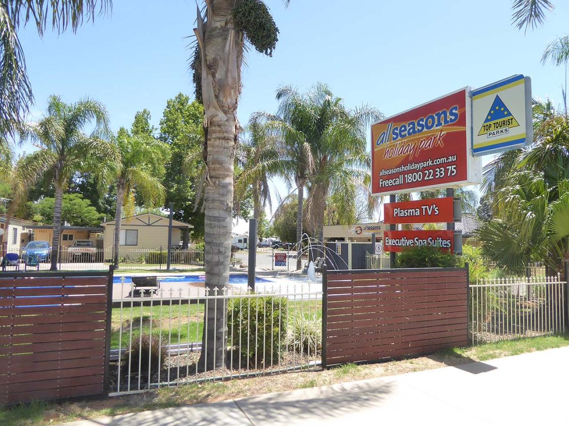 All Seasons Holiday Park is a Top Tourist (Top Parks) member and located on one of the main streets in Mildura (Fifteenth Street which is part of the Calder Highway). This park is almost directly opposite the Calder Top Tourist Park and is within walking distance to Mildura Central, Gateway Tavern and a range of retail or food outlets. The park has a really convenient area beside the main road to pull out of the lane of traffic to allow safe access to, and exit from, the entrance to the park.