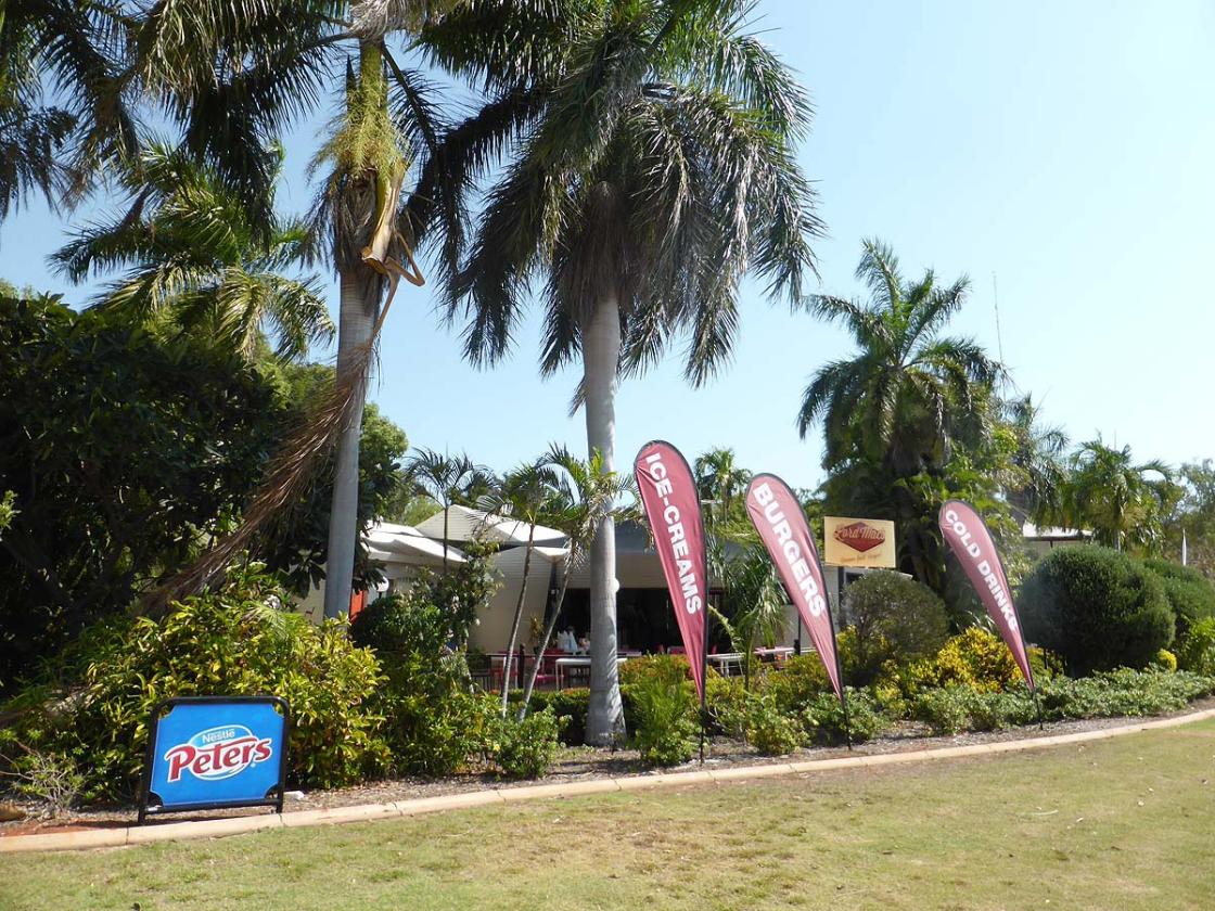 Lord Macs Burgers is located on Sanctuary Road near Cable Beach in Broome, Western Australia. We decided to head to Lord Macs for lunch and try some of their interesting burgers. We ordered an Emu/Kangaroo (special of the day) and a crocodile (Mac Snappy) burger. These were very nice but I thought a little expensive as chips need to be ordered separately.