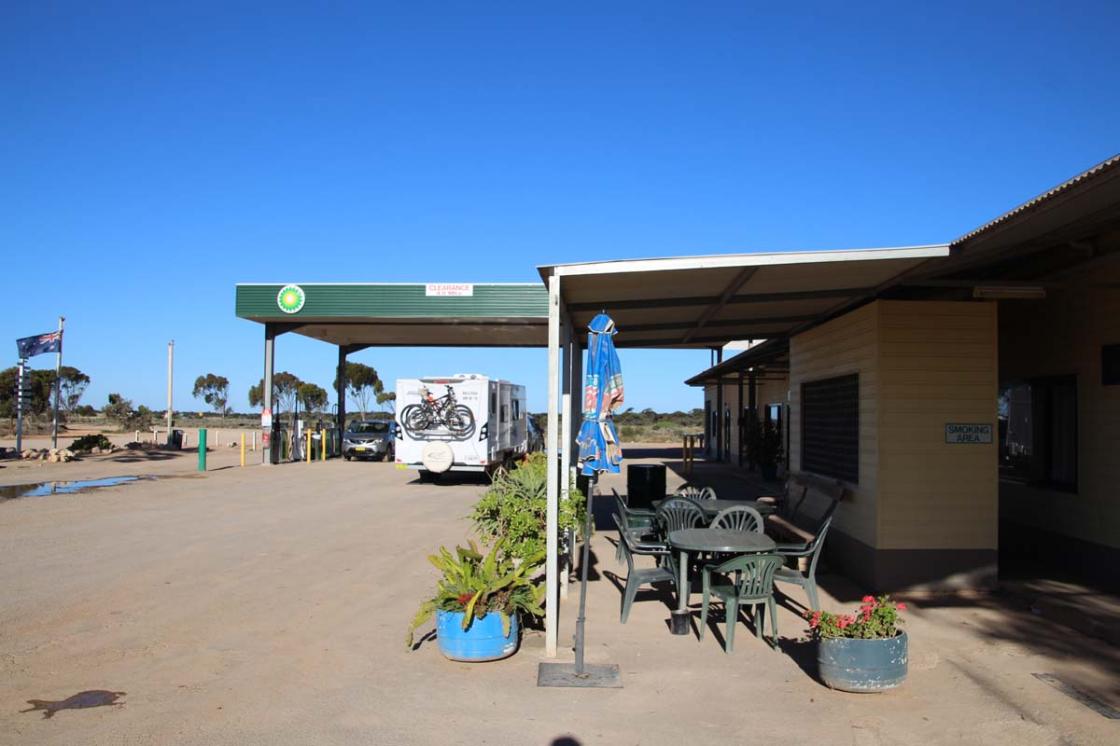 We decided to stay the night at the Caiguna Roadhouse caravan park when travelling east across the Nullarbor towing our caravan. The roadhouse serves meals, has bar facilities and is quite neat and tidy - they also provide Motel rooms for an overnight stay. We were allocated a large flat drive through site and were able to leave the caravan hooked onto the car. This site was powered but you are required to use your own water - as you can imagine water is very scarce in this part of the country. The amenities block is basic with hot showers and flushing toilets. We sat outside our van and enjoyed a beautiful sunset over the desert.