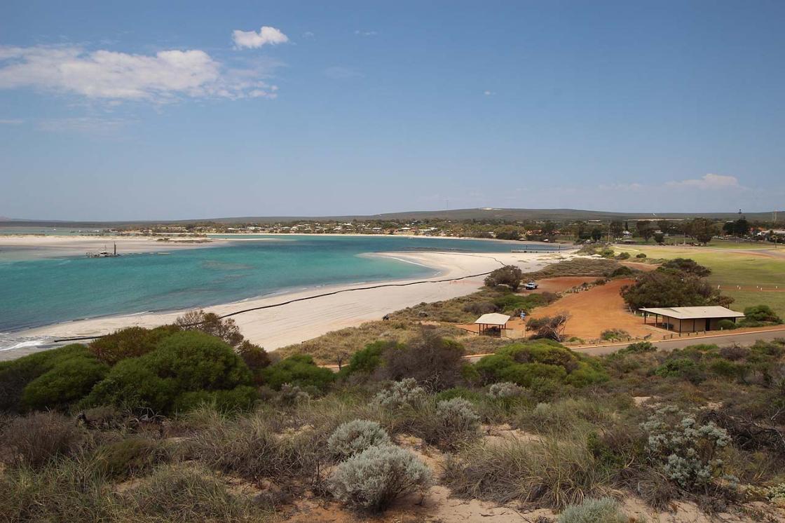 Chinaman's Rock Lookout is just south of Kalbarri on the wonderful cliffs that overlook the town and the Murchison River. There is car park overlooking the mouth of the river and walking trails lead to Chinaman's Beach and Chinaman's Rock and the lookout. Halfway along the track is a memorial to the Zuytdorp - a ship that was wrecked off the coast of Western Australia leaving no survivors. There are plenty of seats provided at the lookouts to relax and enjoy the wonderful view of the ocean, Kalbarri and the surrounding countryside. Beautiful contrasting colours of red dirt, white sand and blue water. Be aware that the wind can be very strong.