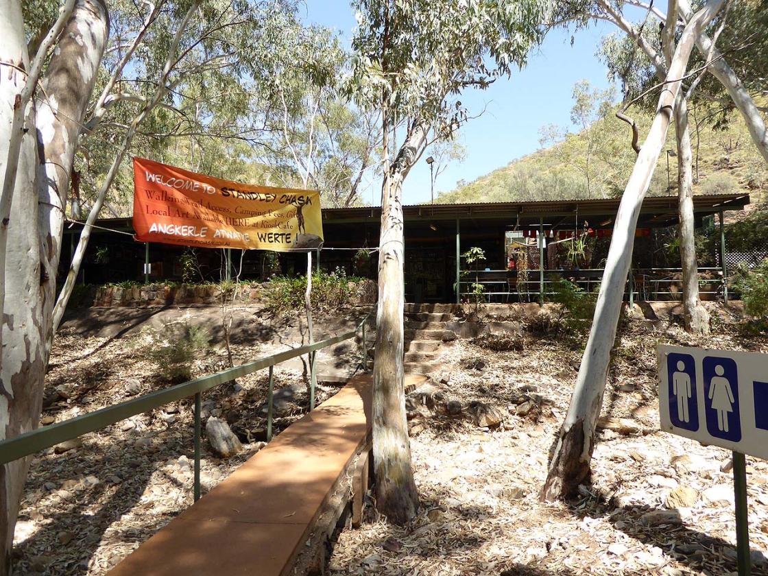 During a day trip from Alice Springs to the West MacDonnell Ranges we called in to look at Standly Chasm (Angkerle Aboriginal Corporation) along Larapinta drive towards Ormiston Gorge. There is a cafe at the entrance and a large covered outdoor eating area.