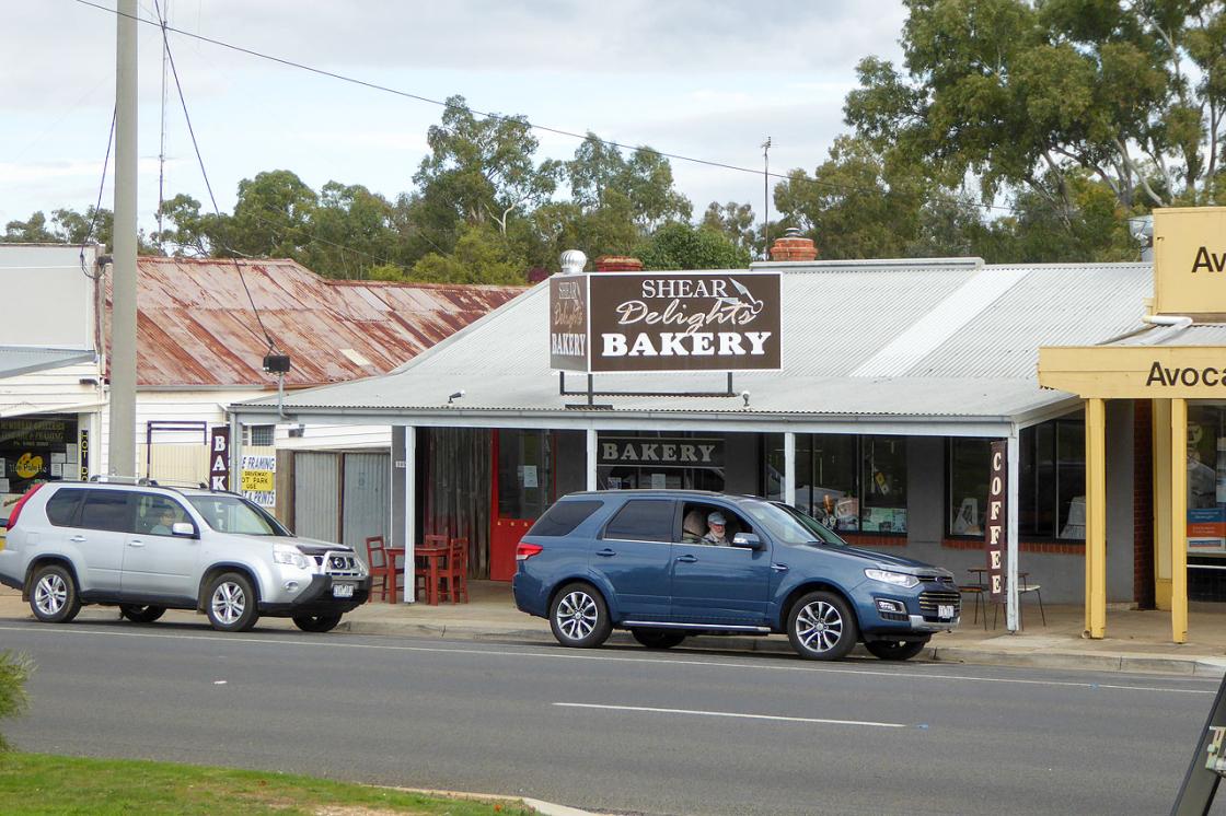 During a recent trip from Maryborough to Halls Gap in Victoria we stopped for morning tea at the lovely little town of Avoca - in the Pyrenees wine region. We parked the car and caravan in the very wide main street and headed to one of the local bakers for morning tea. There are two bakers across the road from one and other so we decided to have a sausage roll from one and coffee from the other.