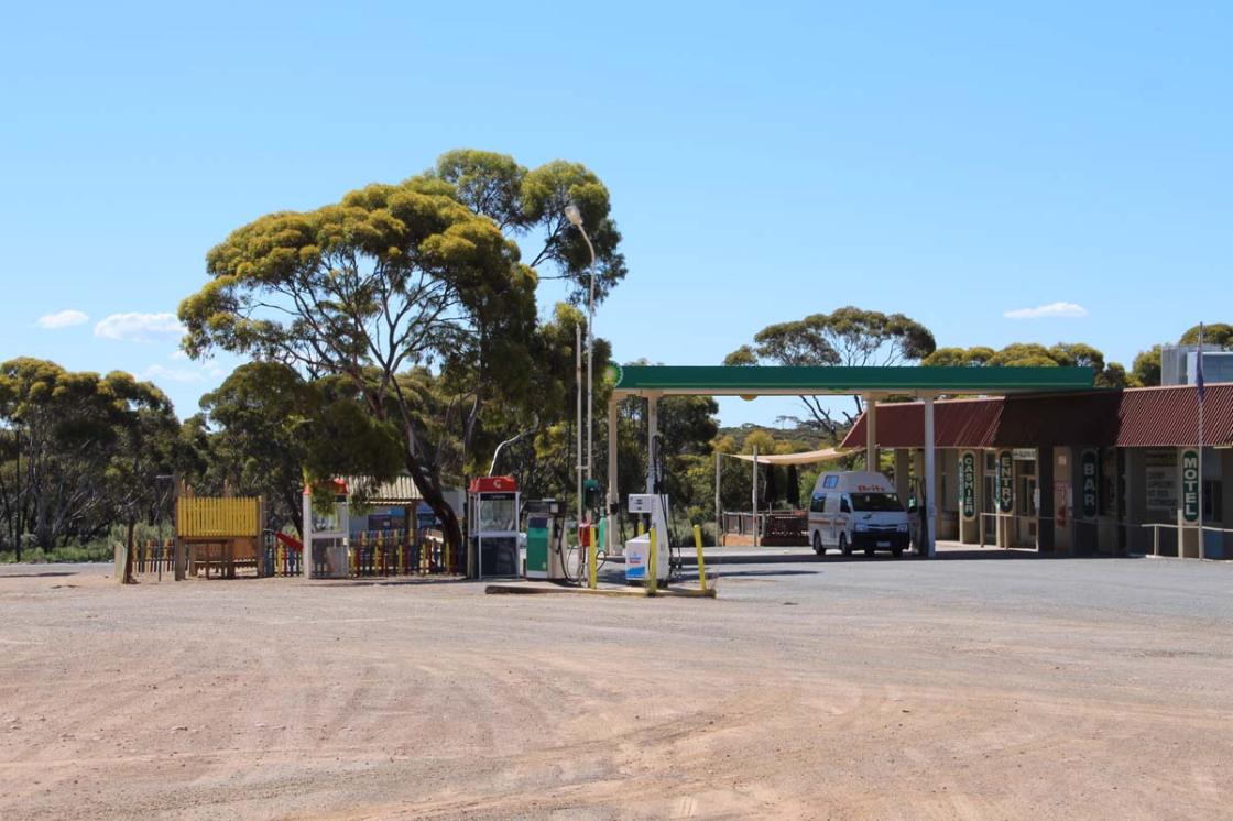 Balladonia is a small roadhouse community located on the Eyre Highway in Western Australia. It is the first stop east of Norseman on the long journey east across the Nullarbor Plain. Between Balladonia and Caiguna is a 146.6-kilometre (91.1 mi) stretch of the highway which is one of the longest straight stretches of road in the world.© Wikipedia
